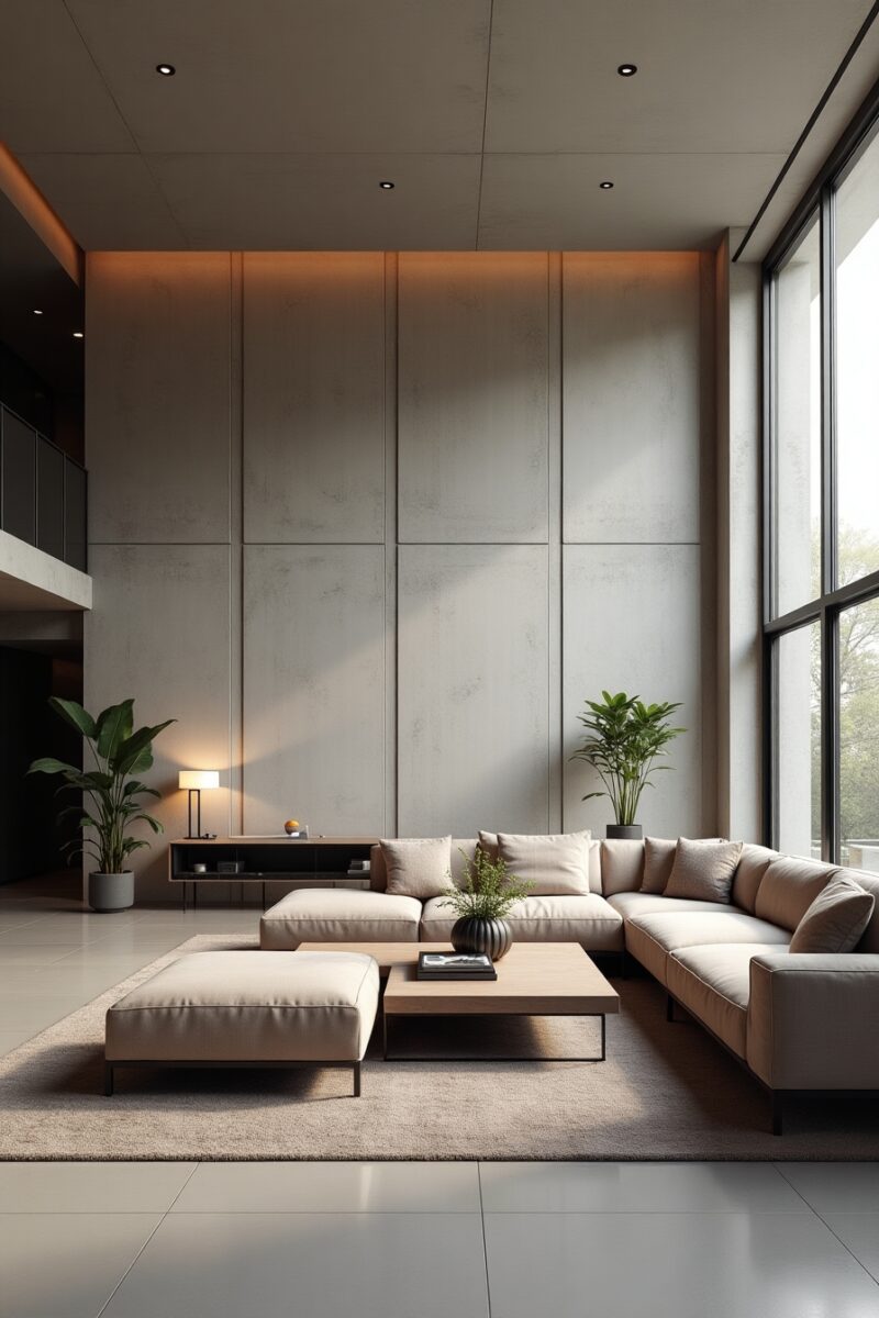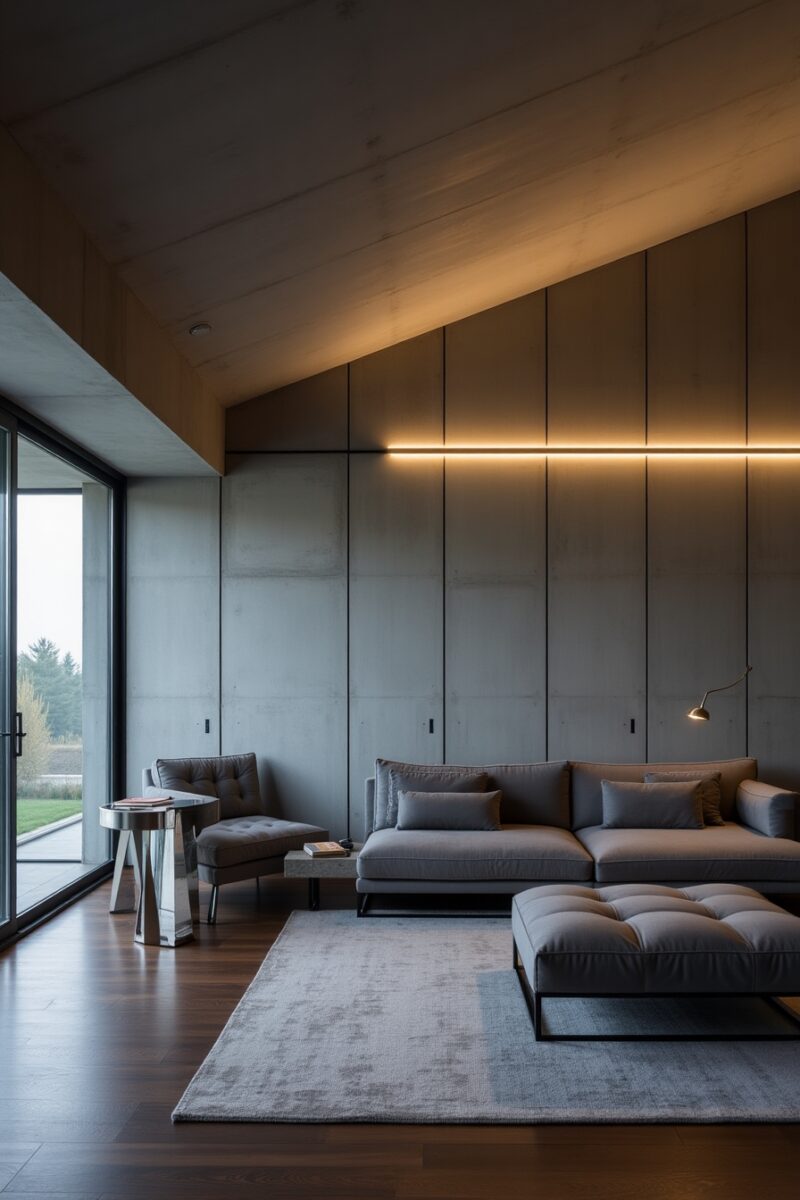 For dramatic effect, designers often combine concrete panels with contrasting warm elements like wood or leather to balance the coolness of the material.