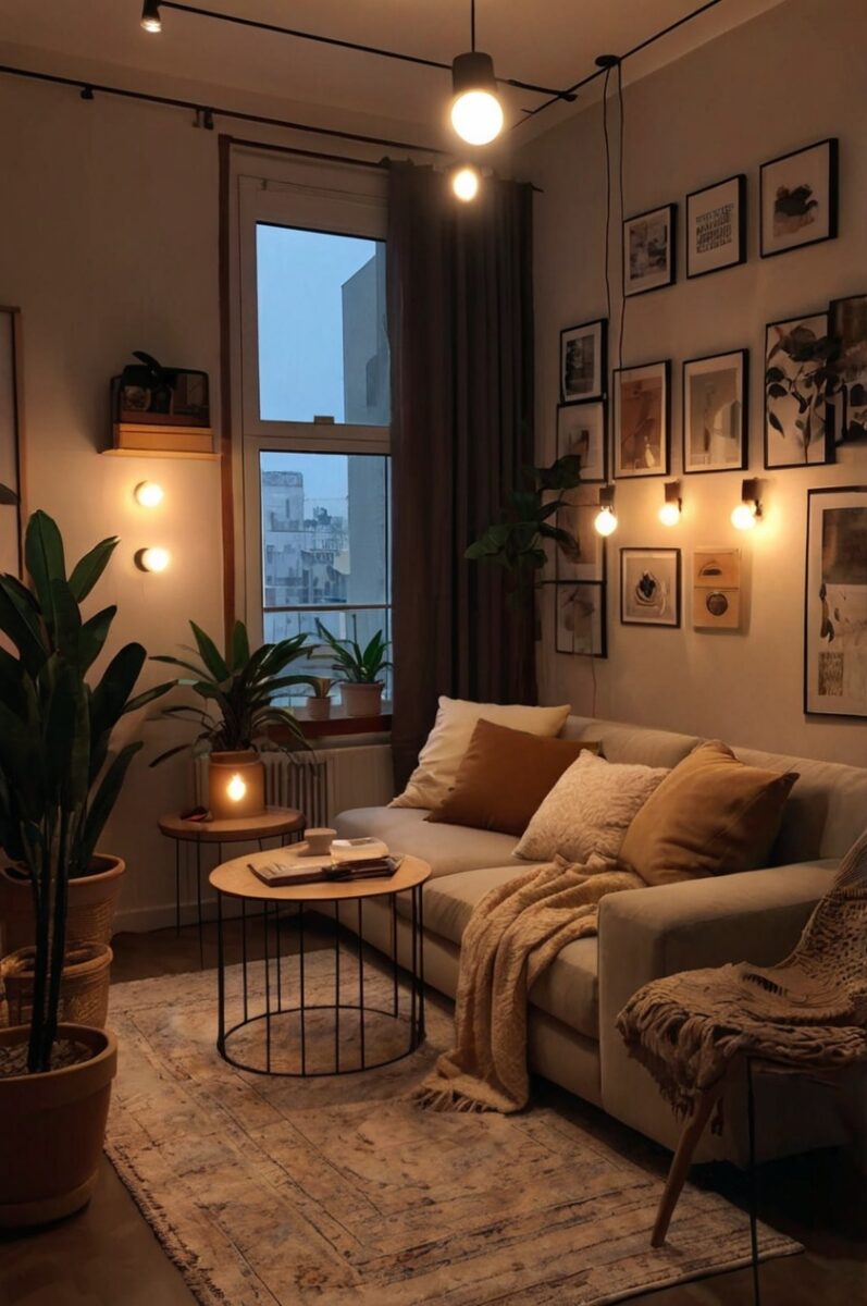 A well-curated gallery wall becomes the conversation center of your apartment, giving guests insight into your personality while creating visual impact that rivals expensive furniture.