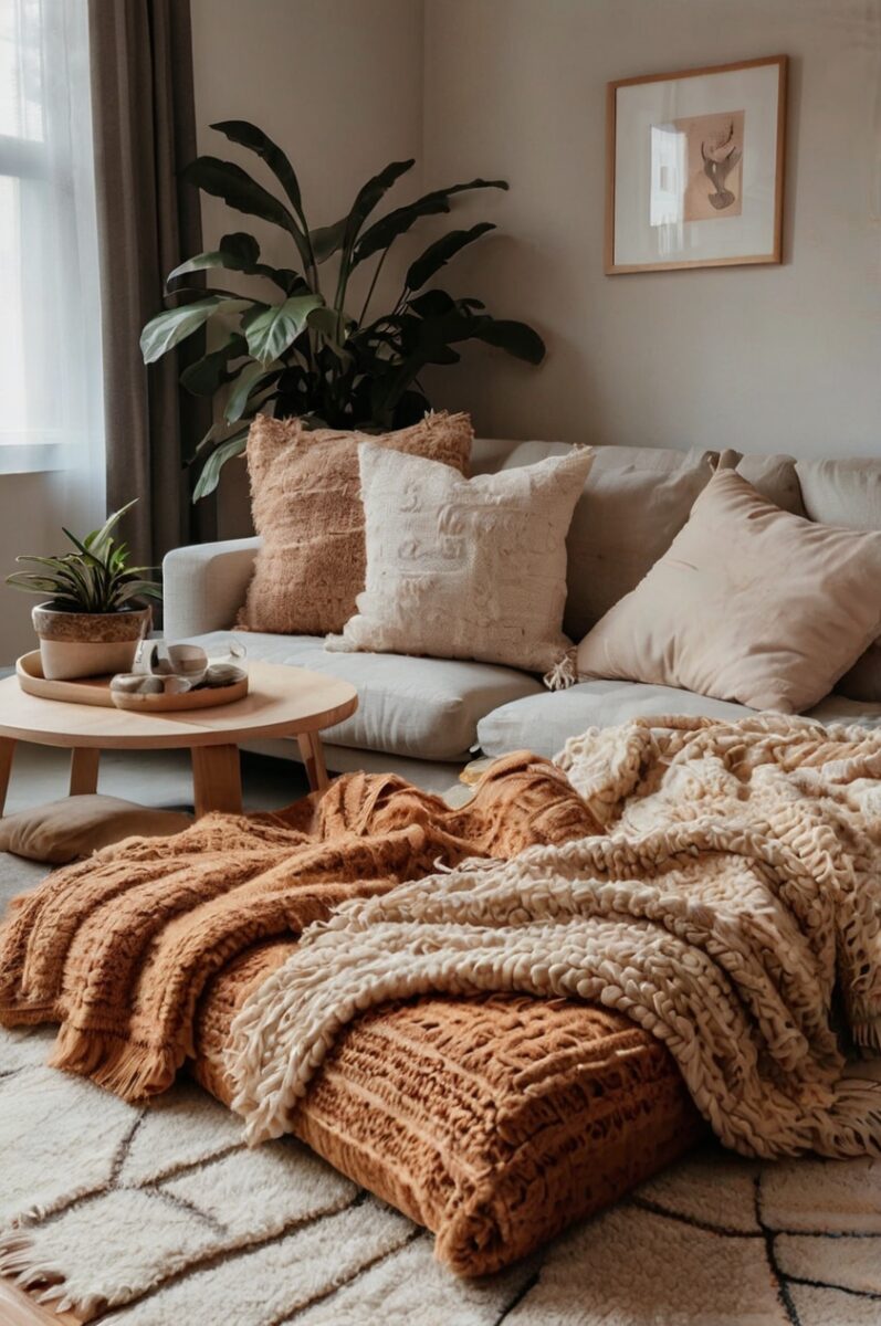 Create Texture Paradise with Throw Blankets and Pillows
