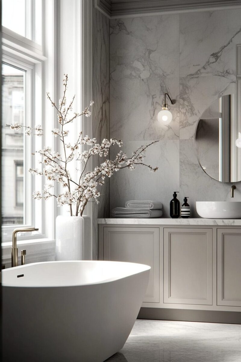 Minimalist luxury bathrooms prove that warmth doesn’t require visual complexity – instead, they focus on exquisite materials and perfect execution.