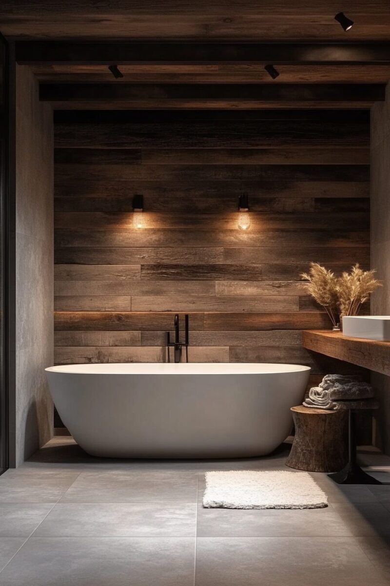 Walls paneled in cedar or teak introduce warmth that tile alone cannot match, while creating a naturally water-resistant surface that ages beautifully over time.