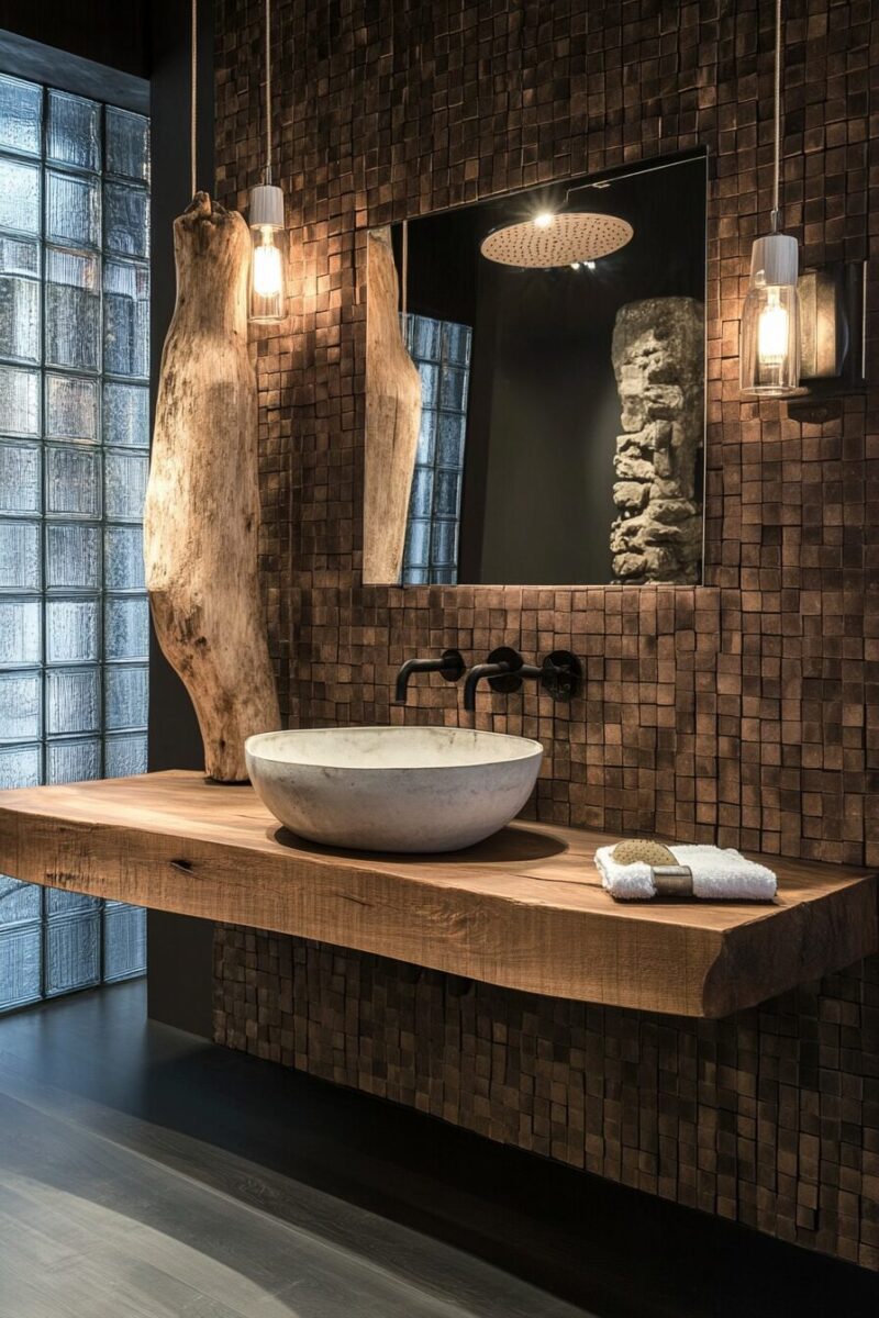 This style celebrates the inherent beauty and sensory richness of natural materials rather than treating the bathroom as a sterile, clinical space.