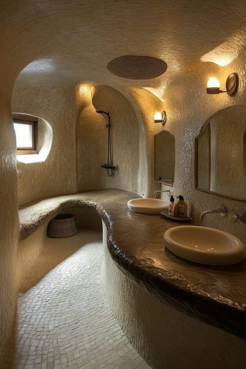Earth-focused bathrooms bring the healing properties of natural materials into daily cleansing rituals, creating spaces that feel grounded and authentic.