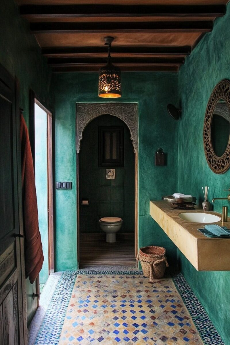 Moroccan-inspired bathrooms transport you to ancient bathing rituals with their sensuous curves, elaborate patterns, and focus on communal relaxation.