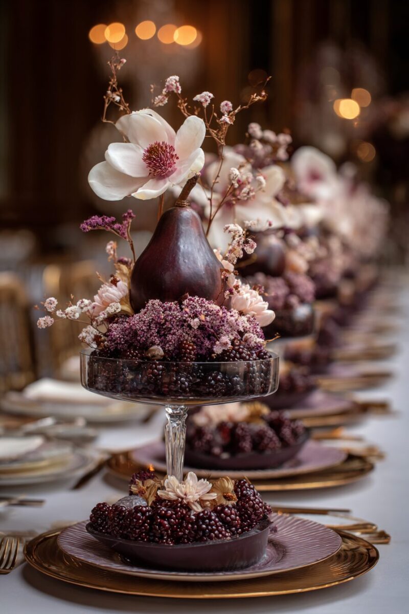 Fresh berries, figs, grapes, and other seasonal fruits add natural beauty and vibrant colors that complement any table setting.