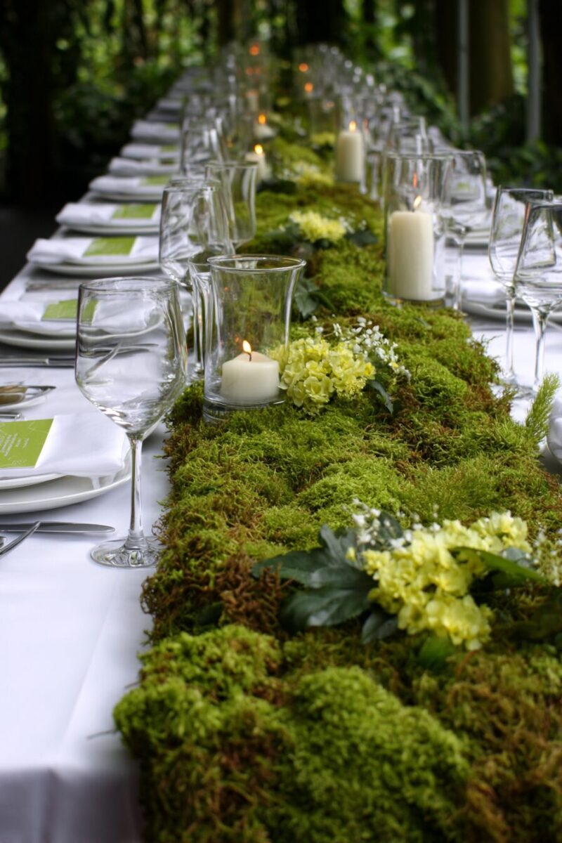 The earthy, fresh scent of real moss adds another layer to the sensory experience, making your reception feel like an outdoor celebration even if you’re inside.