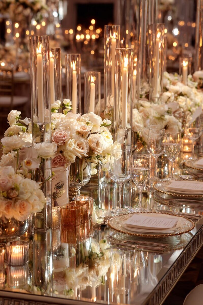 The elegance and versatility of mirrors ensure this decoration approach complements virtually any wedding style or color palette.