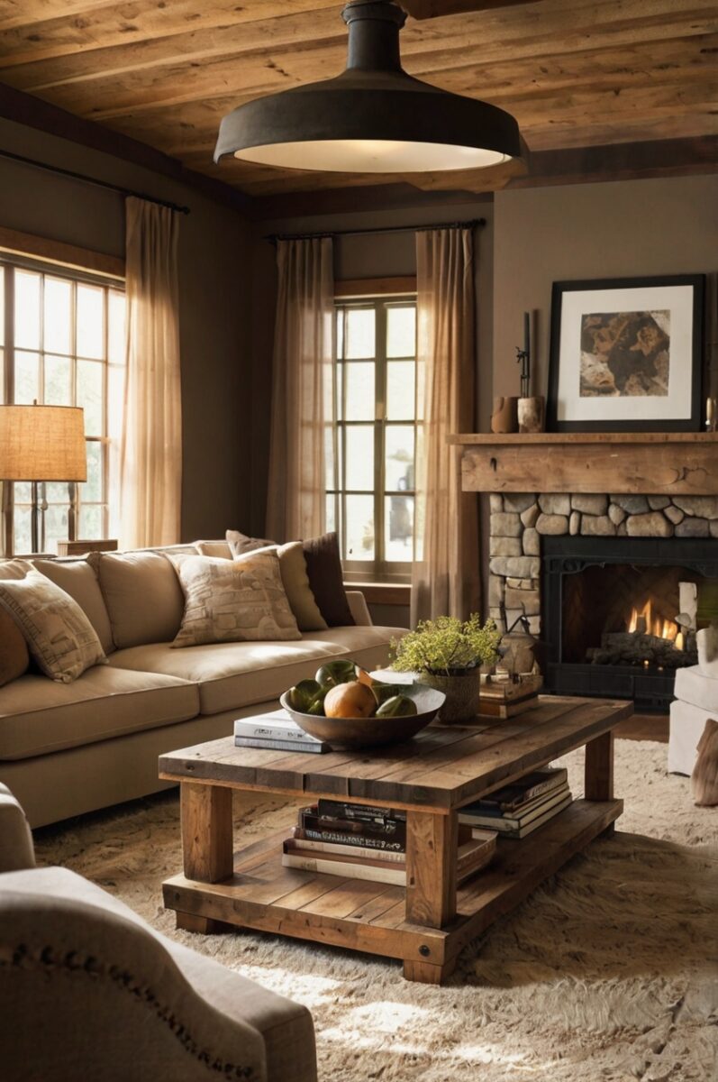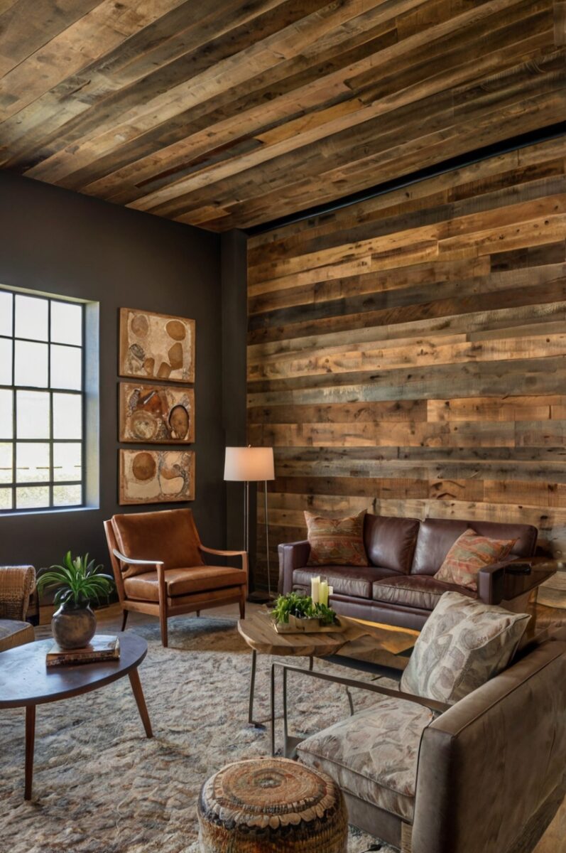 Transform Your Living Room into a Dark Academia Dream: 13 Must-Try Ideas! Take Me There →Reclaimed Wood Accent Walls and Architectural Details