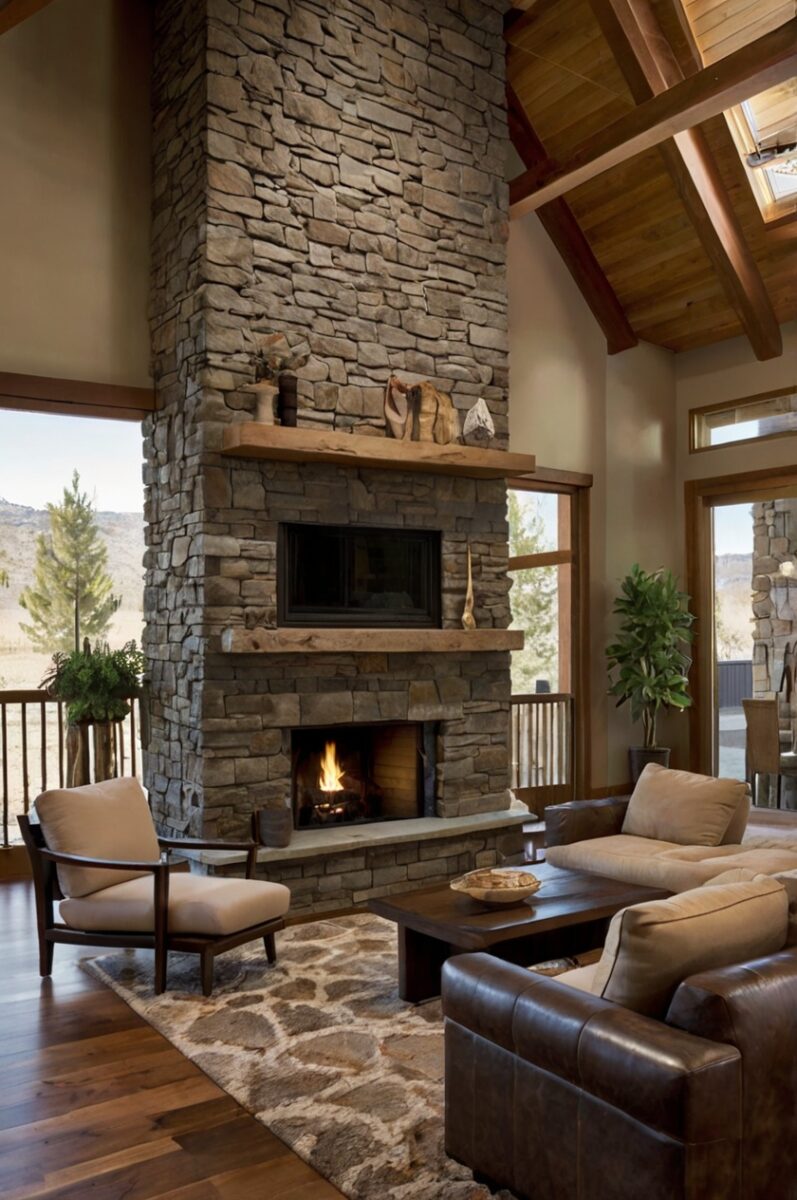 You’ll want to select stone that reflects the natural landscape of Western regions—think river rock, stacked slate, or rugged limestone in earth tones.
