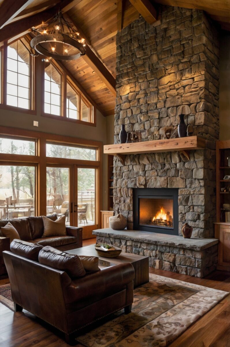 Floor-to-Ceiling Stone Fireplace as the Focal Point
