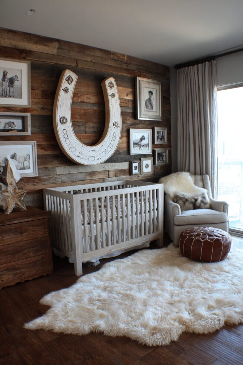 Create captivating focal points throughout your nursery using horseshoes arranged in artistic patterns that celebrate Western heritage.