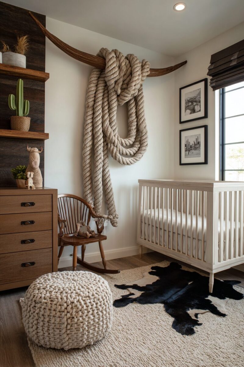 The natural fiber texture of rope appeals to babies’ developing tactile senses while maintaining the authentic Western aesthetic you’re creating.