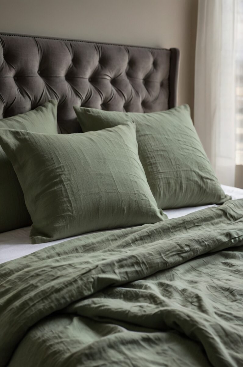 Green bedding benefits from natural textile choices like linen or cotton that reinforce the organic aesthetic you’re creating.