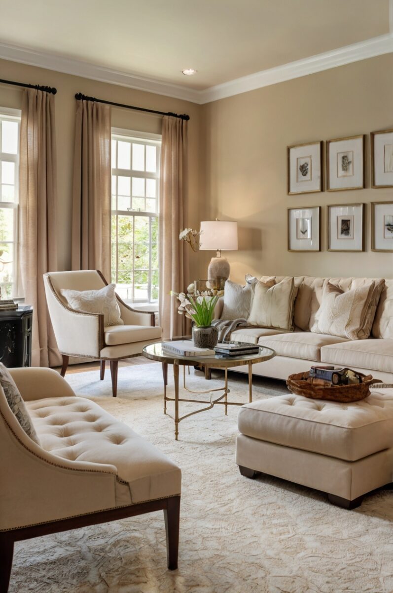 For a cohesive look, repeat the sandy beige tone in furniture pieces or accessories throughout rooms with accessible beige walls.