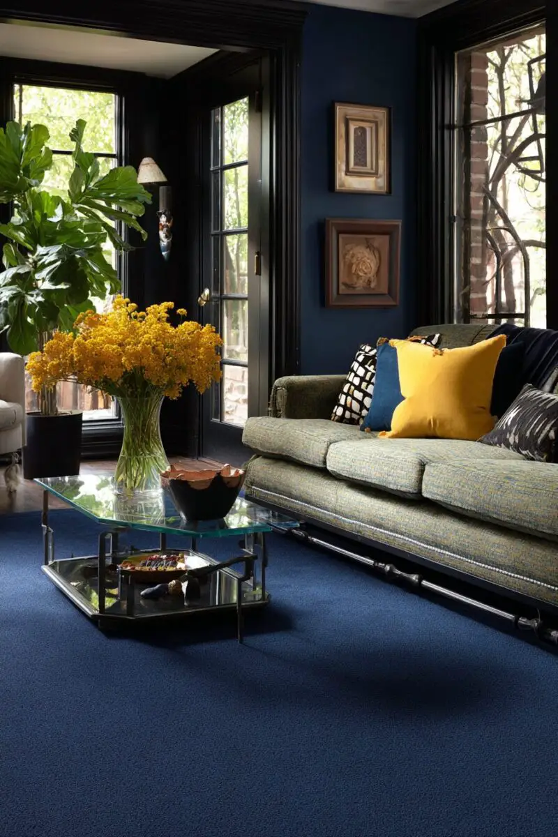 10+ Perfect Carpet Colors That Make Mustard Walls Look Awesome!Navy Blue