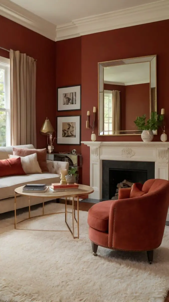 With warm red walls, it creates a beautiful contrast that feels both cozy and refined.
