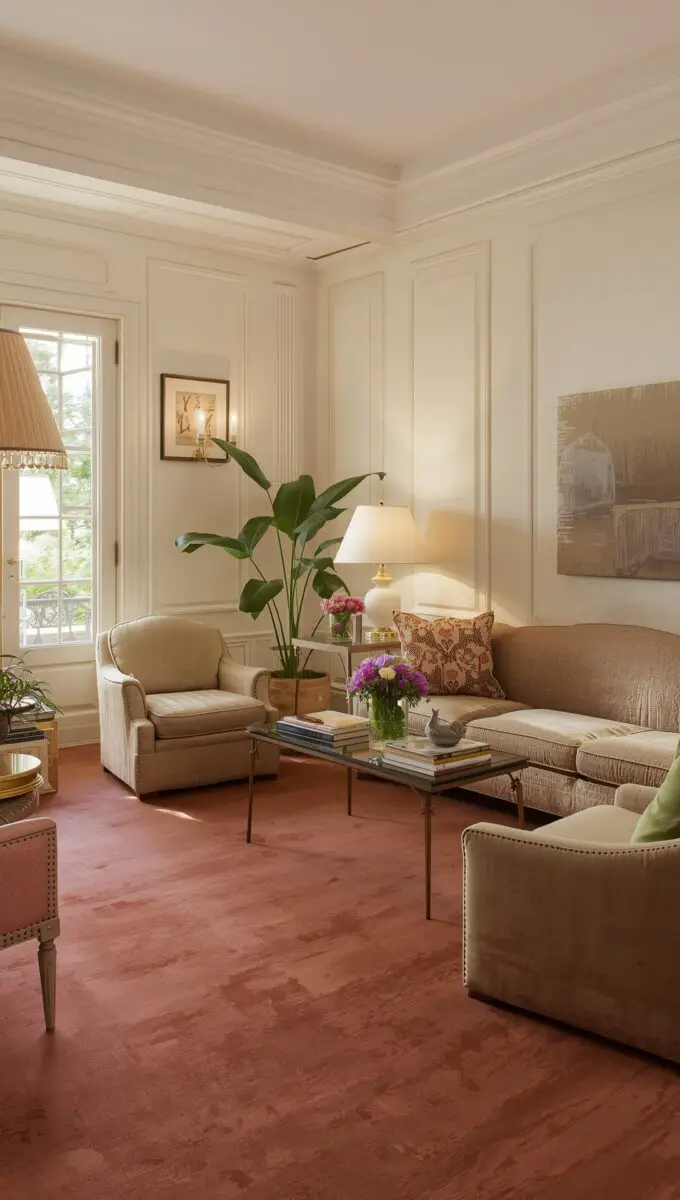 Terracotta carpets with cream walls create the coziest, most inviting atmosphere.