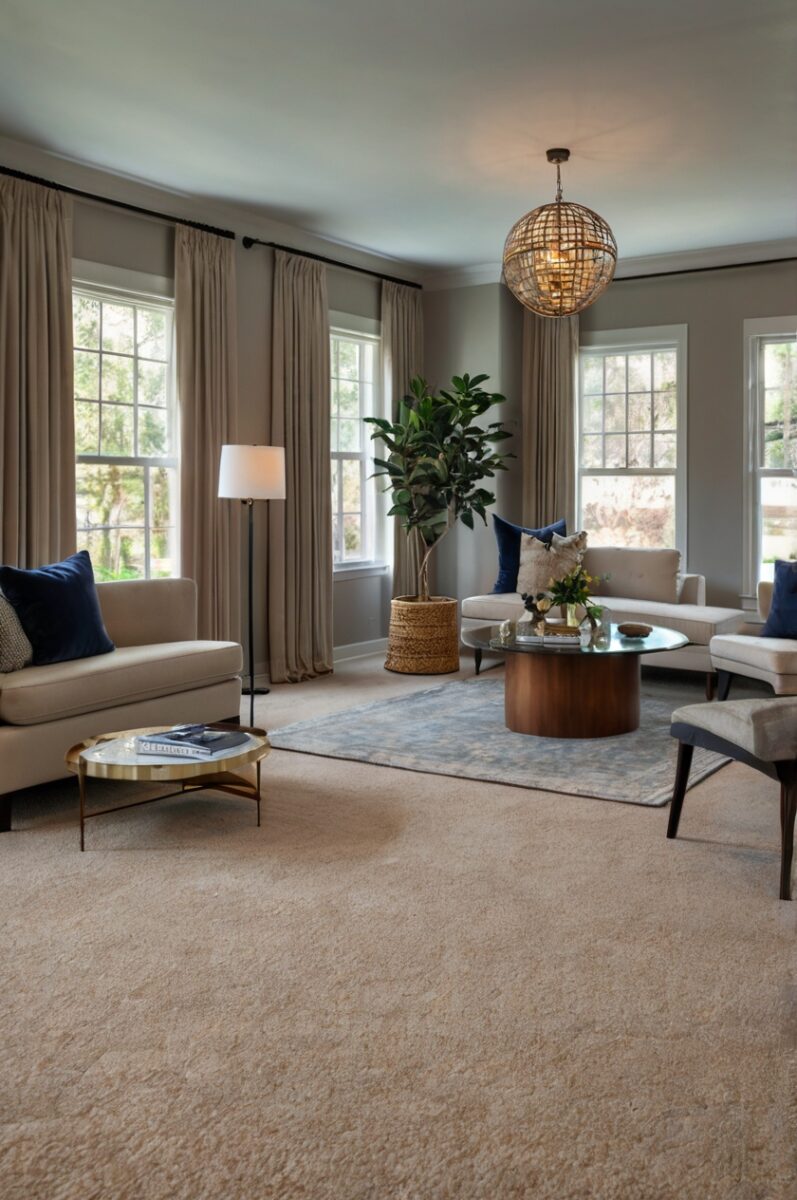 When selecting your beige carpet, consider the undertones in both your carpet and wall color – warm beige carpets with yellow undertones pair beautifully with greige walls, while cooler beige carpets with gray undertones complement blue-gray walls.
