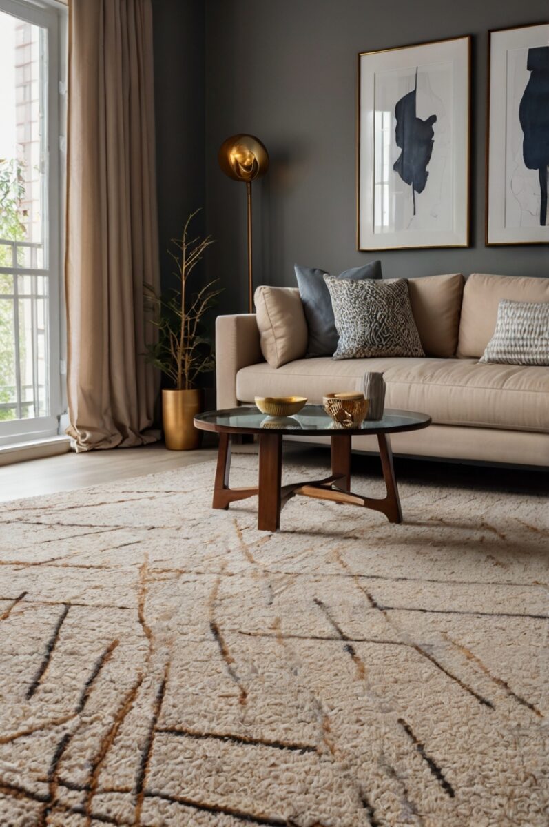 For a cohesive approach to this dynamic pairing, consider incorporating colors from your carpet pattern in your decorative accessories, creating continuity throughout your room.