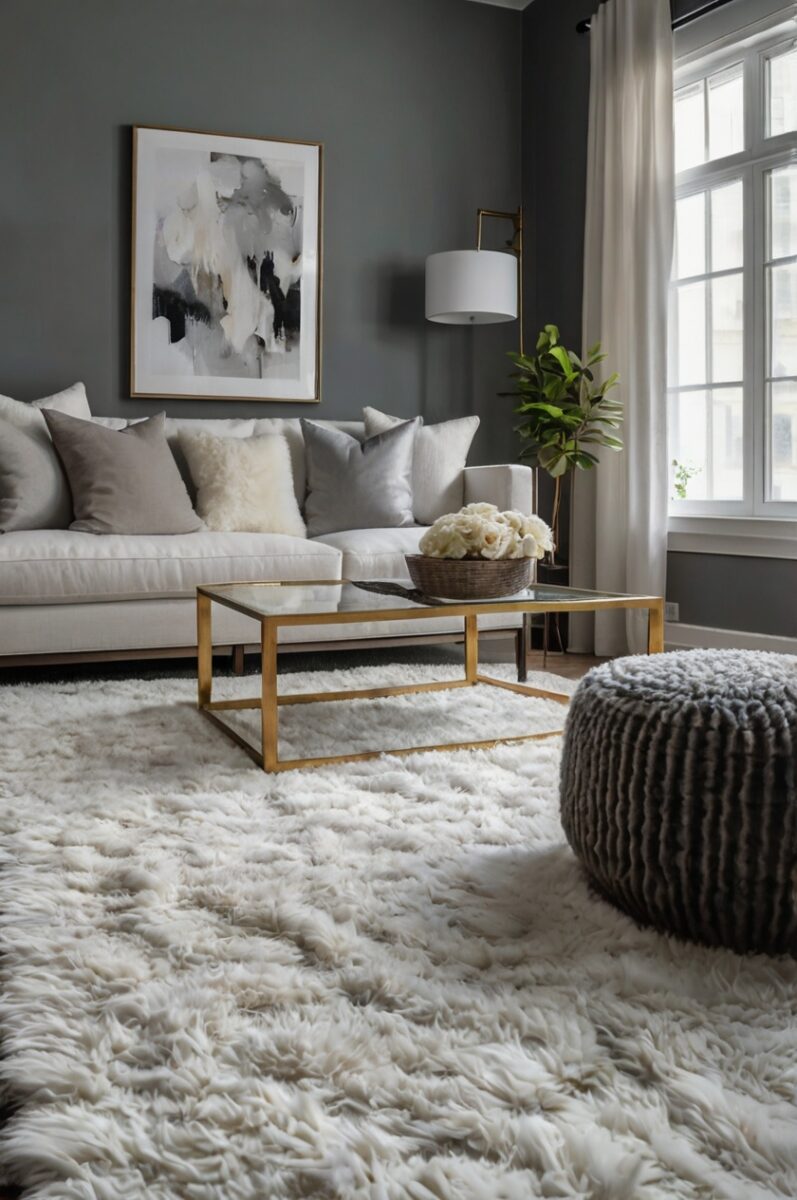 White carpet creates a striking contrast against gray walls, instantly brightening your space and making it feel more expansive.