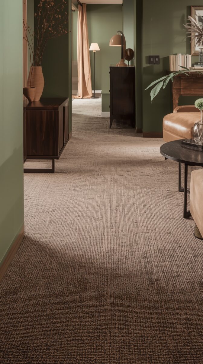 Let me walk you through my favorite carpet colors that balance green walls perfectly, and why they work on an emotional level.