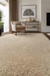 Texture is important when working with similar colors – consider a patterned beige carpet or one with varied pile heights to add visual interest.