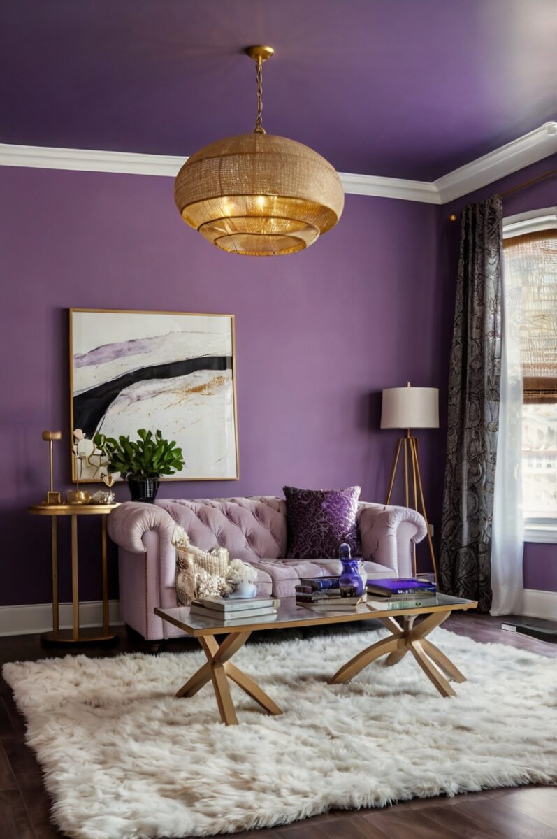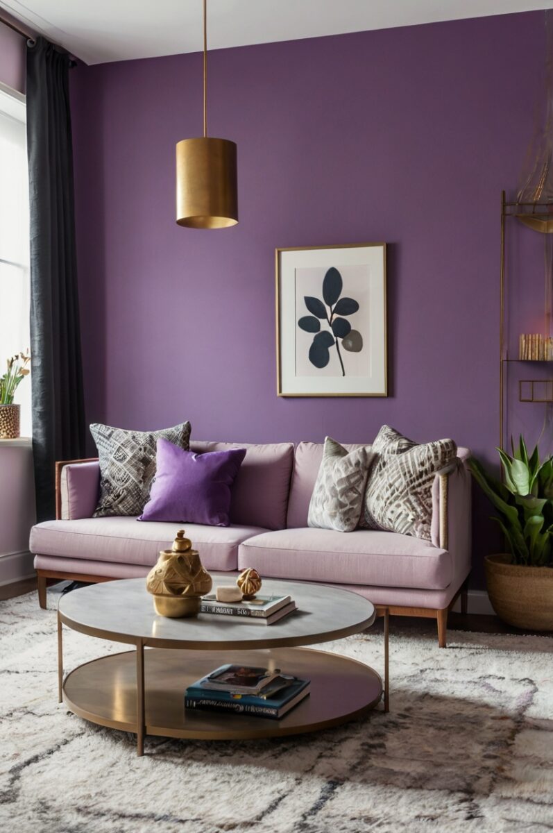 This pairing allows decorative elements and furniture to stand out beautifully against the cohesive purple backdrop.