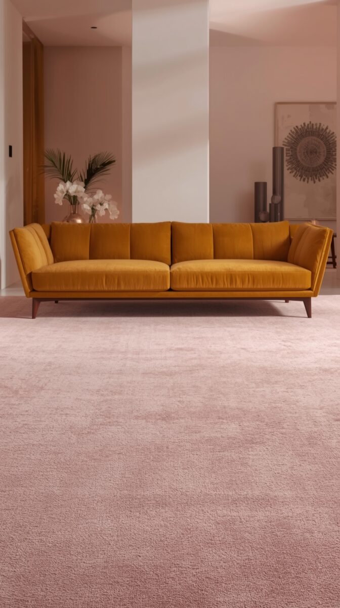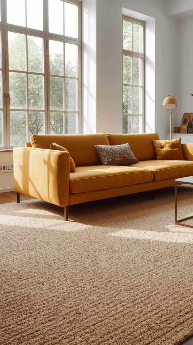The right carpet color doesn’t just “match”—it makes your mustard sofa feel intentional, cozy, and like it belongs in a magazine spread.