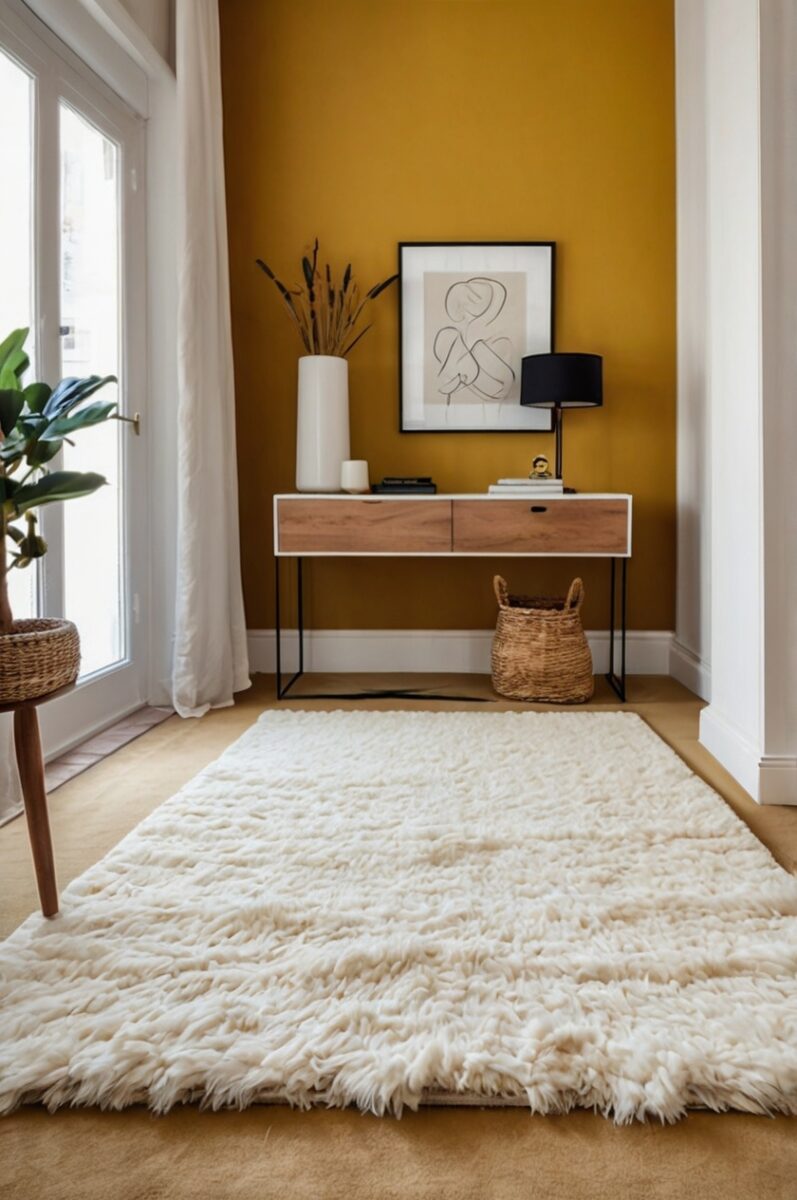 If you’re renting, white carpet with mustard walls can help maximize natural light, making even small apartments feel more spacious.