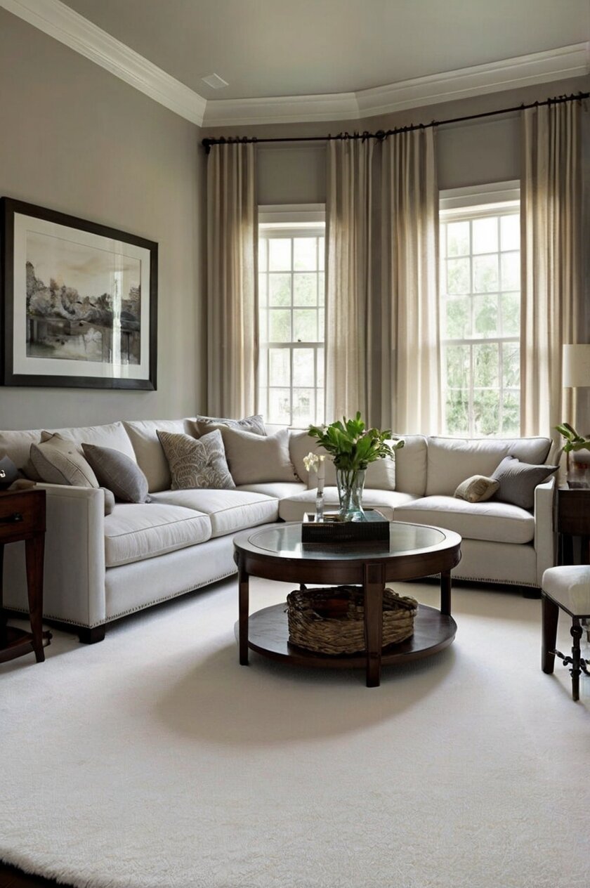 Picking the right carpet color can make your Revere Pewter walls look even more amazing, while the wrong choice might make your room feel flat or boring.