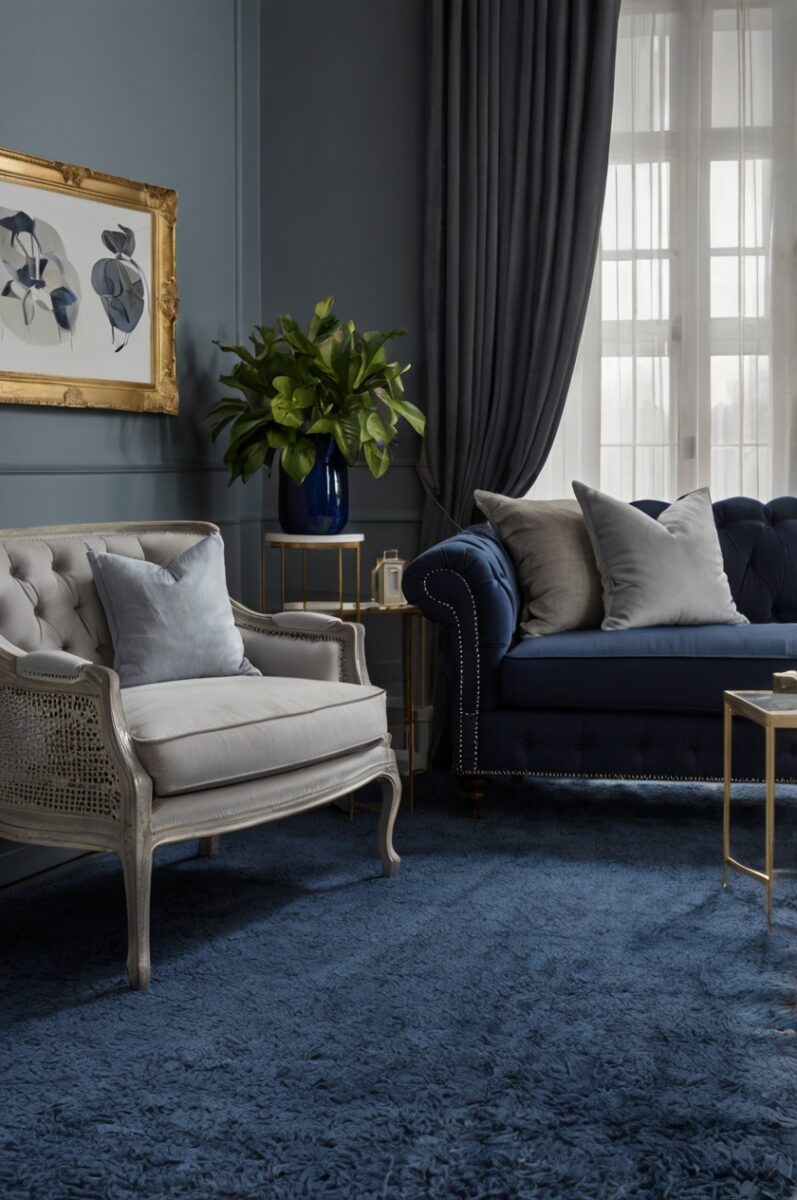 When I first saw a navy carpet paired with a silver gray sectional at my friend’s home, I was struck by how the contrast created such a powerful visual impact.