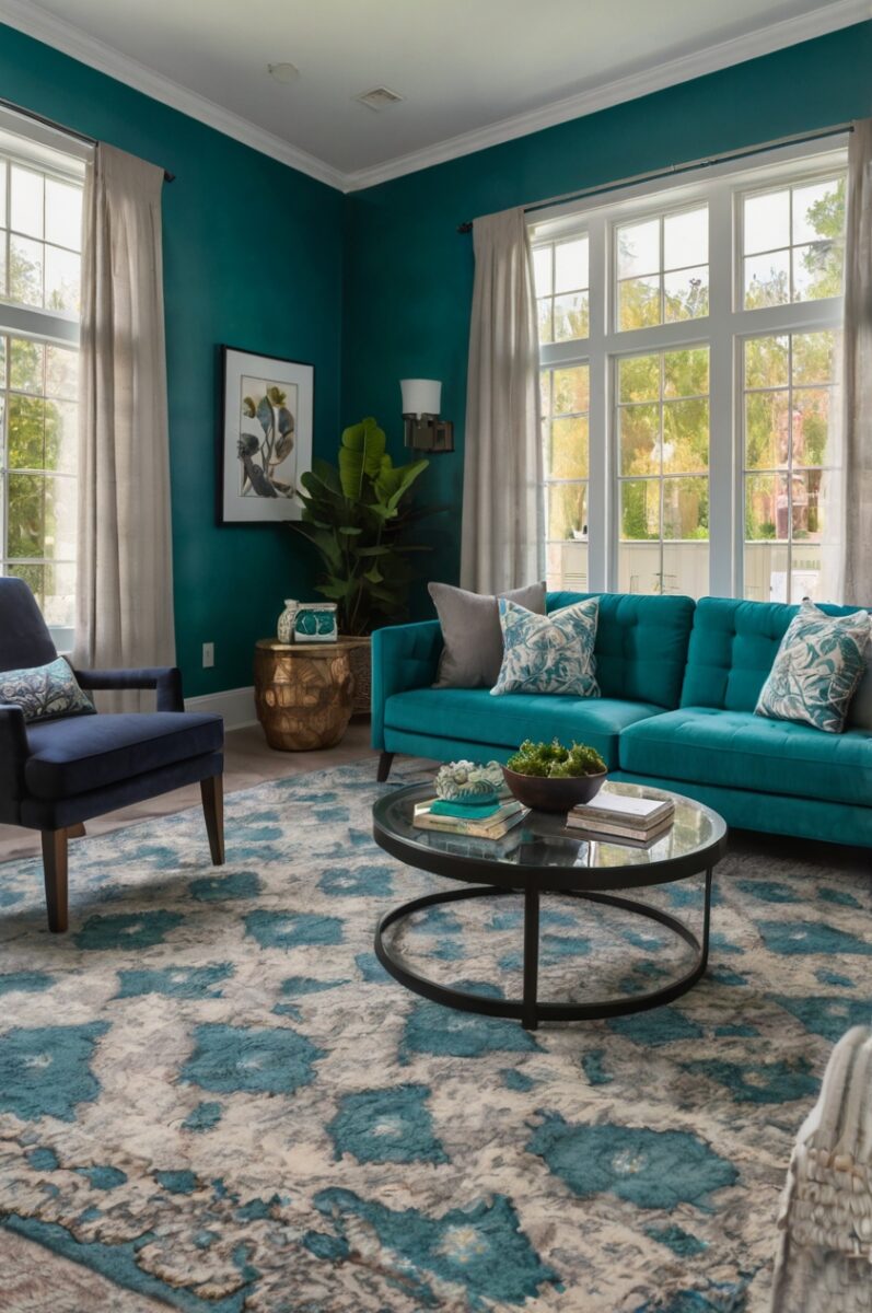 The right carpet can either complement or contrast with your teal walls, dramatically changing the overall feel of your space.
