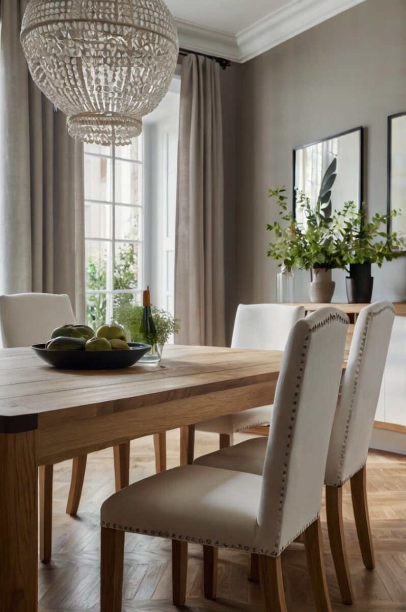 It provides a subtle contrast that lets your oak table shine while adding visual interest to your dining room.