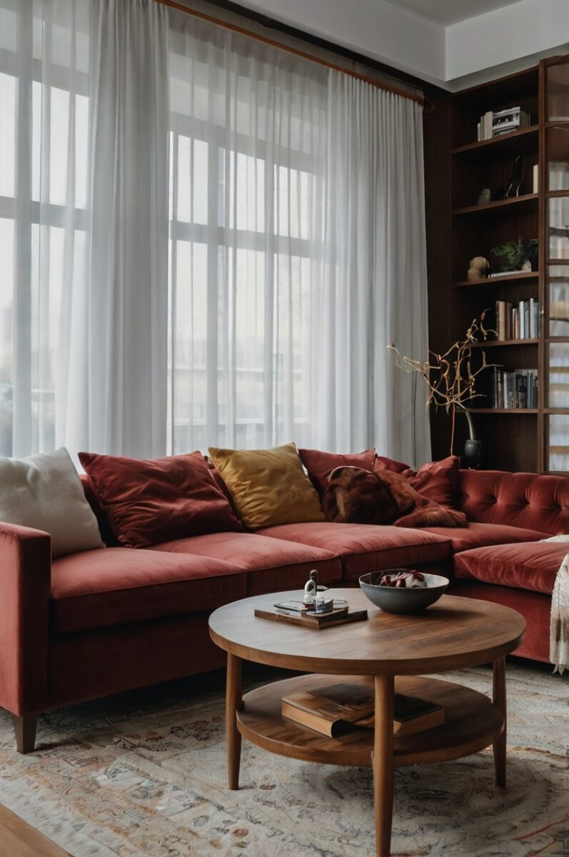 Go bold with heavy drapes in one of these tones for a statement piece that sings next to cherry woods.