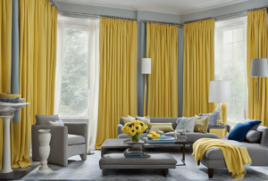 For an edgy vibe try sleek charcoal gray curtains boldly colorblocked down the center with vivid mustard yellow velvet.