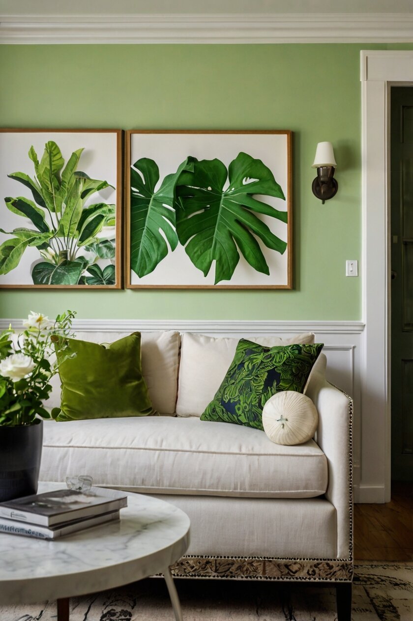 White sofas, tables, chairs, or dressers all work great with green walls.