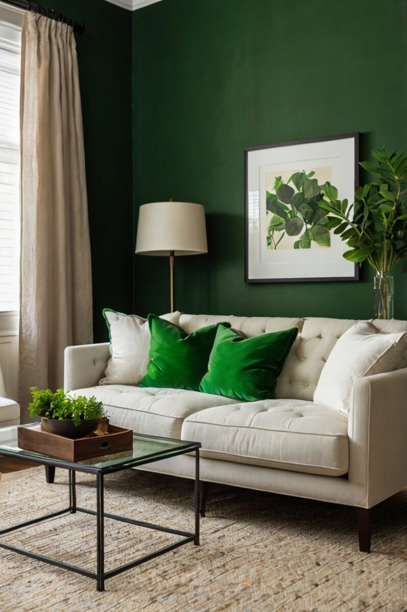 For a finished look, add a few green items like pillows or vases to your white furniture to connect it with your green walls.