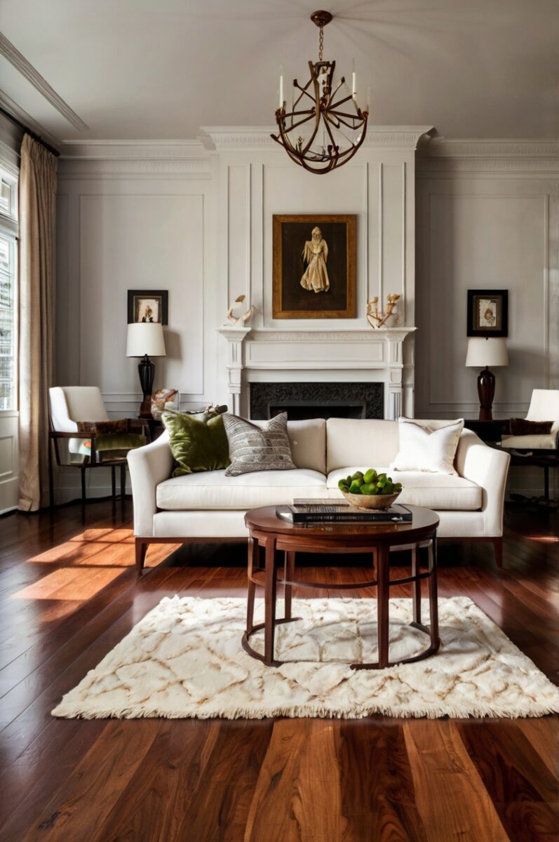 When you choose white furniture, your mahogany floors become the star of the show.