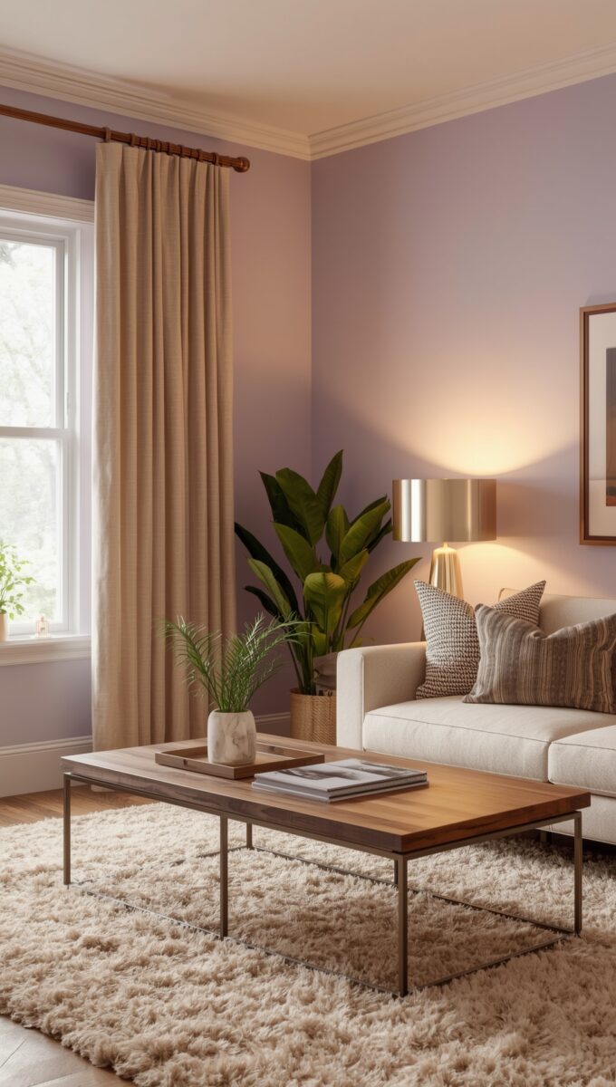 Lavender brings this dreamy quality to taupe curtains that I absolutely love.