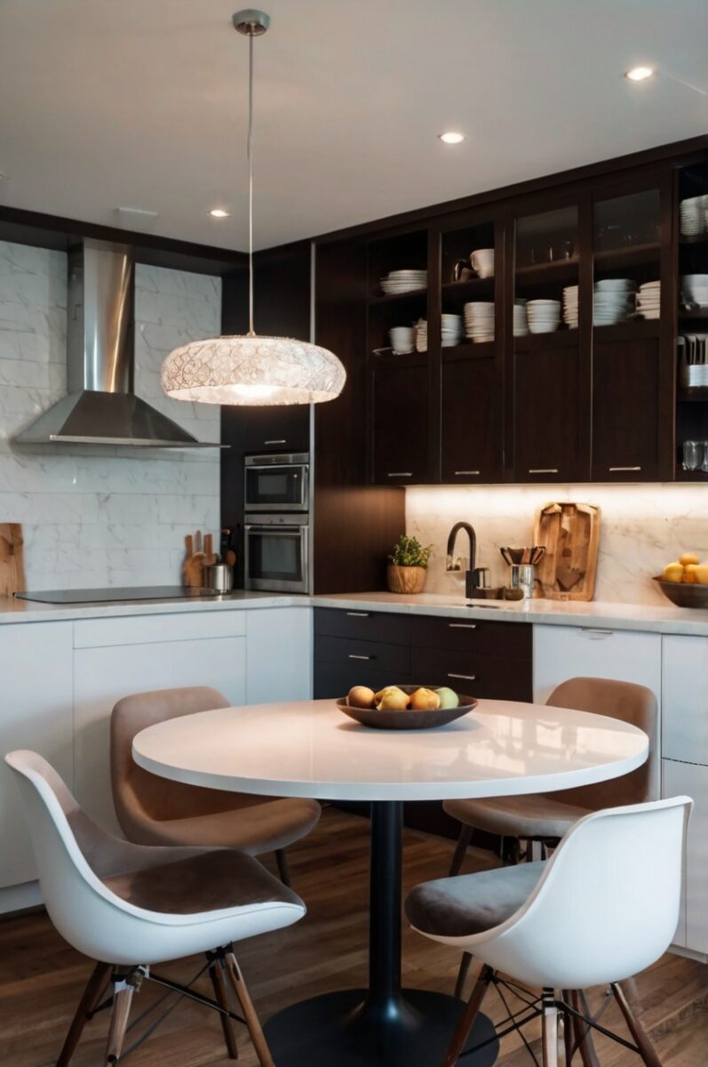 White kitchen tables create the perfect contrast against espresso cabinets, making your space feel bright and welcoming.
