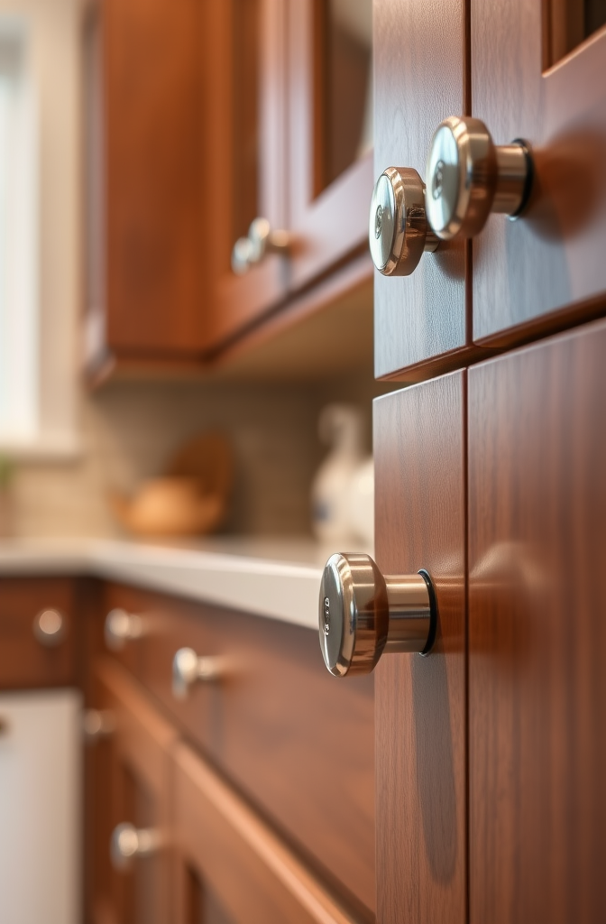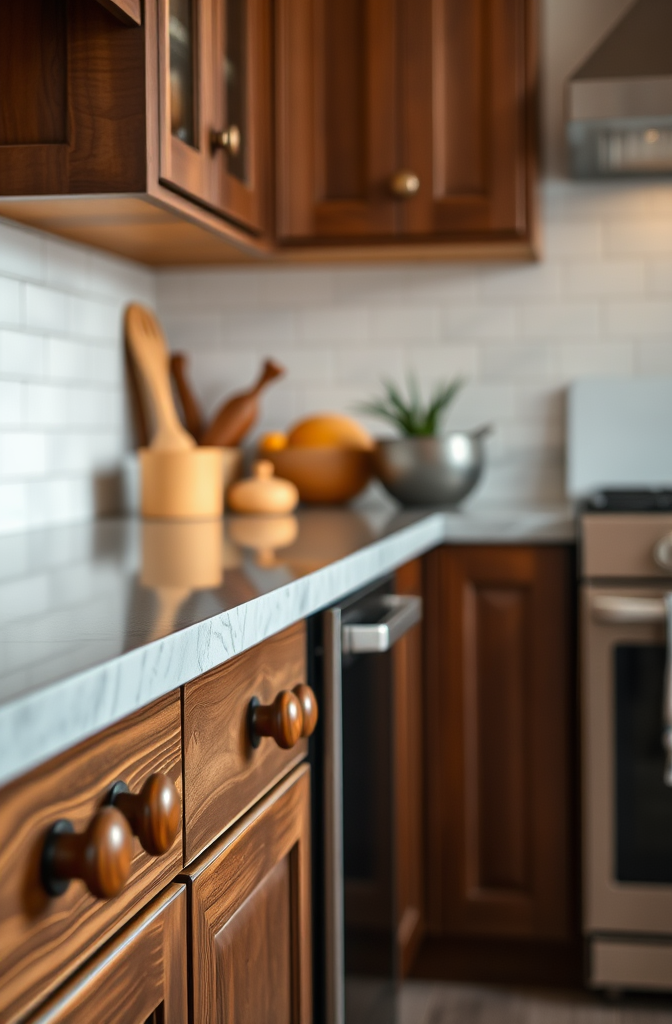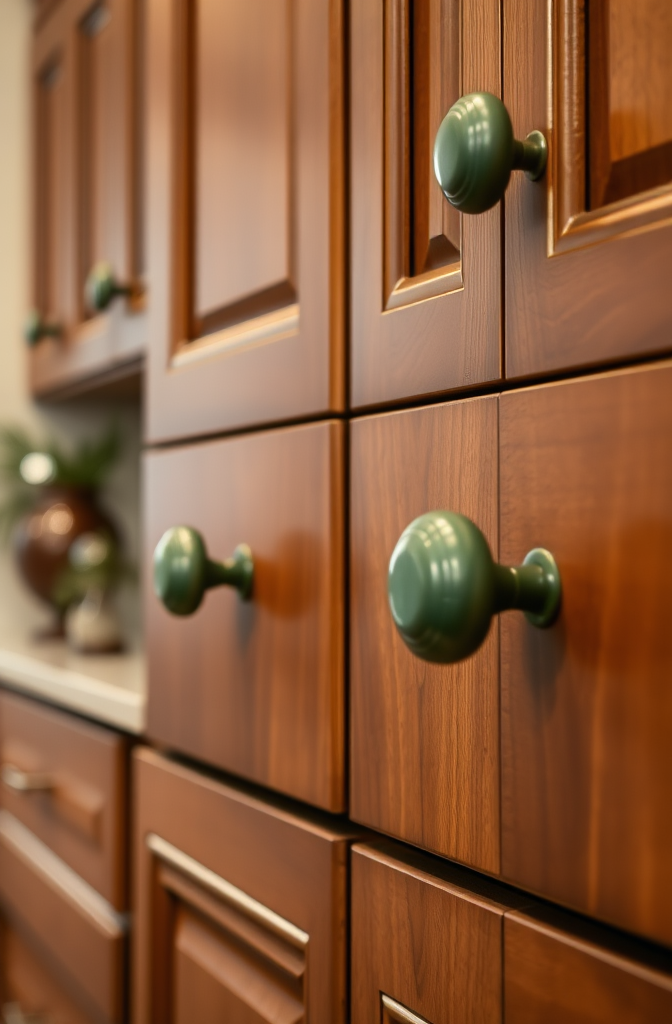 For maximum impact, consider knobs made from exotic or unusual wood species that create distinct contrast against your cabinet material.