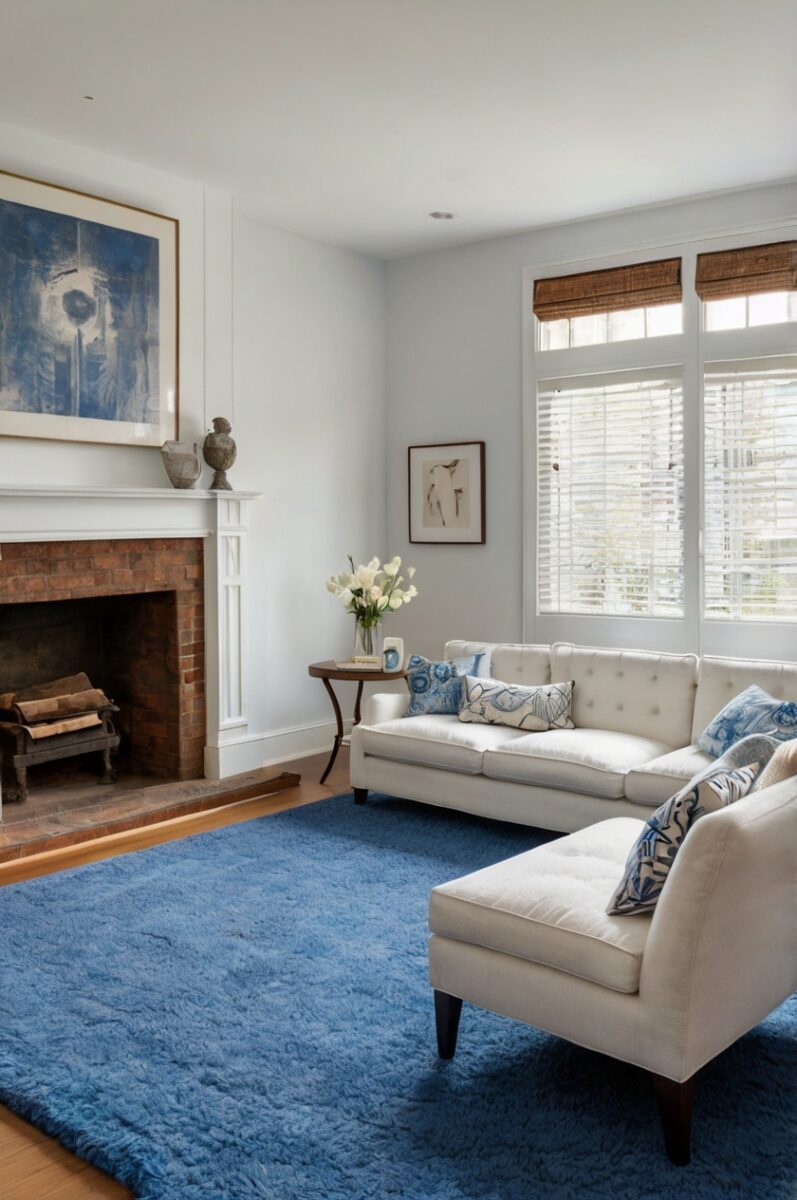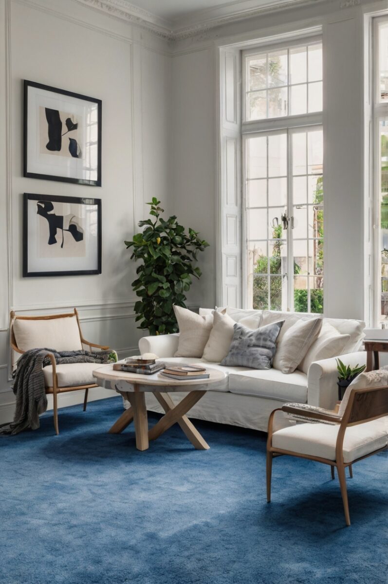 White is like a blank canvas that lets your blue carpet be the star of the show.