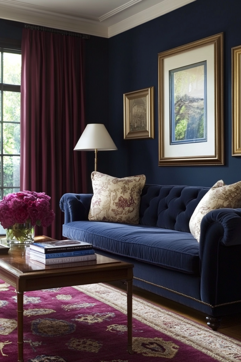 Navy and burgundy together exude posh elegance.