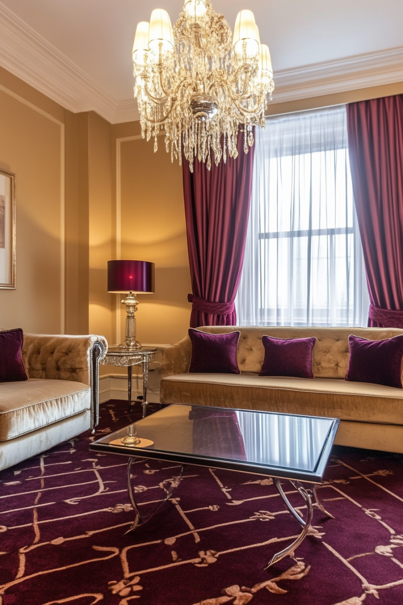 Gold paint provides the perfect compromise balancing the richness of burgundy carpet.