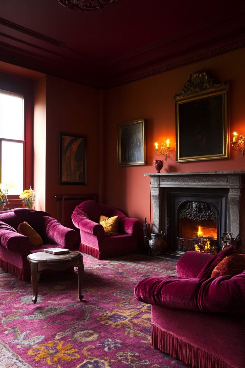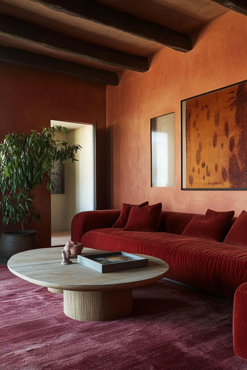 Warm terracotta walls will bring out burgundy’s creamy depth beautifully while adding texture.