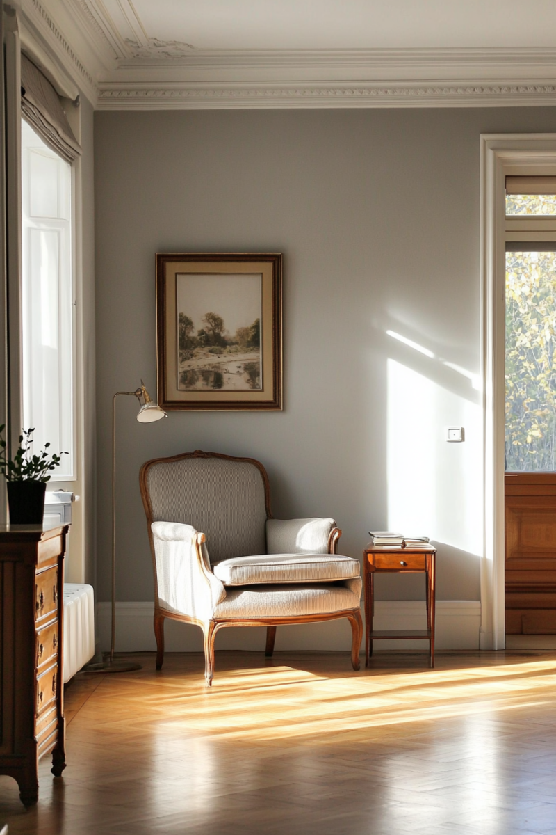 Soft gray is a timeless choice that works wonders in making golden oak floors feel fresh and updated.