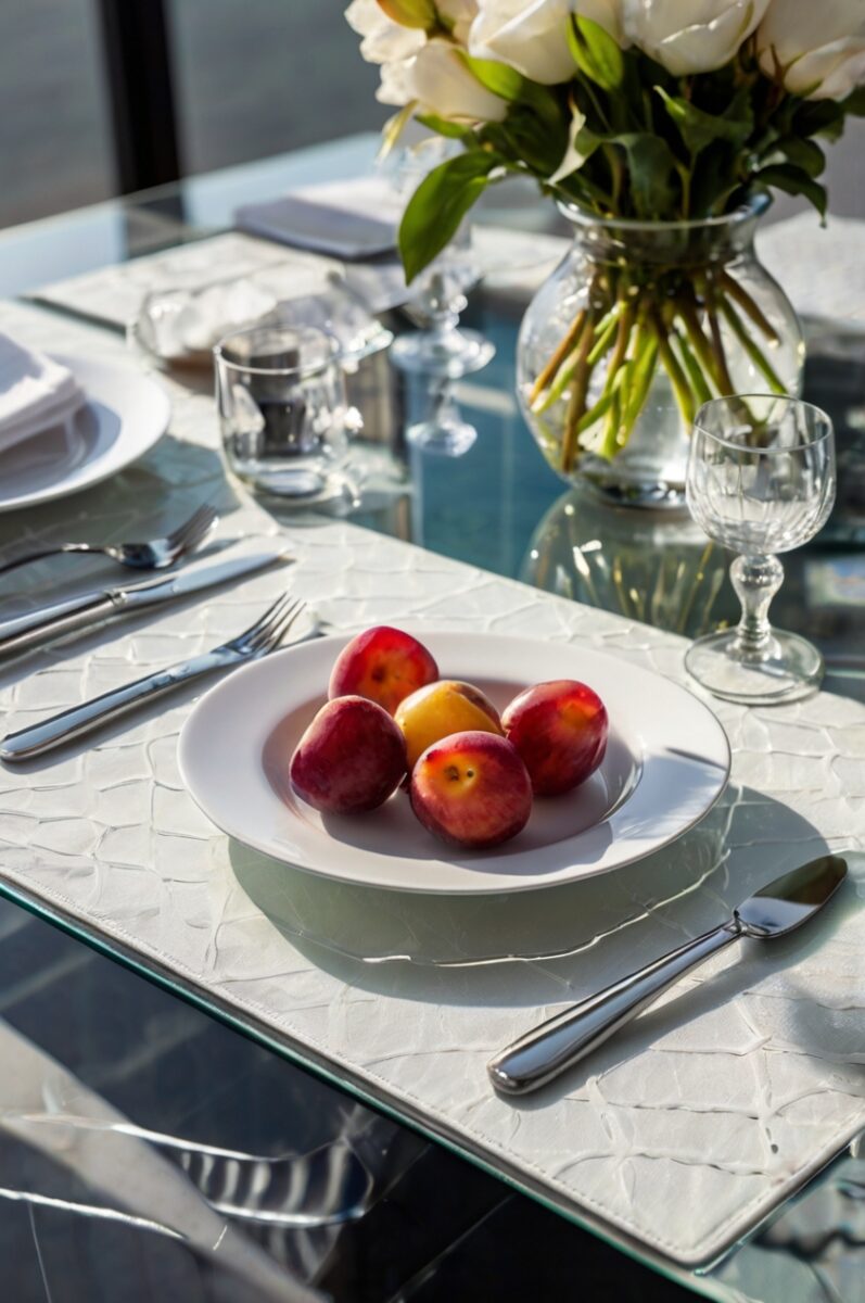 When you choose white placemats, you’re adding brightness to your dining area without overwhelming the transparent beauty of your glass table.