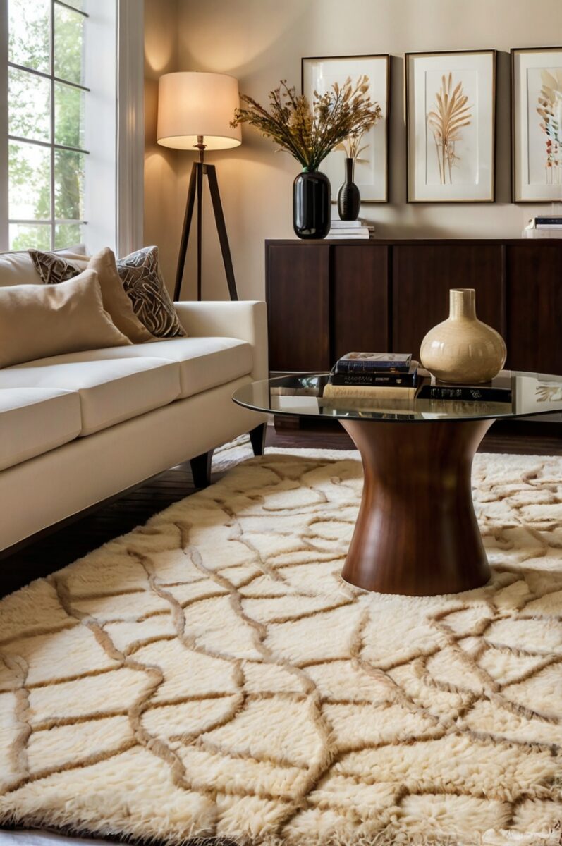 Wool-blend cream rugs offer durability while maintaining that soft, luxurious appearance.