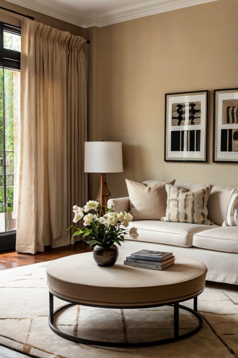 The warm relationship between brown and beige creates a harmonious backdrop that feels cohesive and intentional.