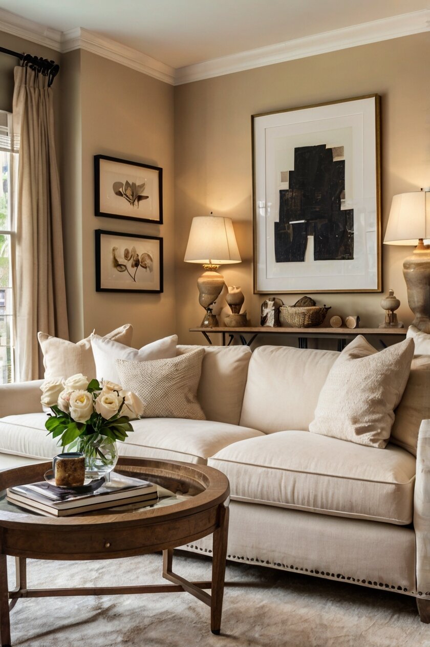 When you choose a white sofa against beige walls, you’re creating a versatile backdrop that can easily transition between seasonal décor changes.